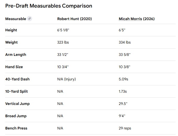 Player comparables aren’t my favorite thing first off, but second, they can be misleading. With that in mind, Morris’ pro comp couldn’t be any more spot on to former Dolphins guard Robert Hunt so it’s hard not bringing that one up.